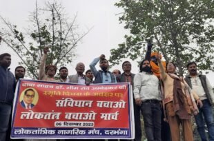 Read More »लोकतांत्रिक नागरिक मंच के द्वारा आज संविधान निर्माता बाबा साहेब डॉ भीम राव अंबेडकर की स्मृति दिवस पर संविधान बचाओ-लोकतंत्र बचाओ मार्च का आयोजन किया गया।