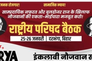 आरवाईए राष्ट्रीय परिषद की दो दिवसीय बैठक कल से, तैयारियां पूरी कॉ. दीपांकर भट्टाचार्य होंगे मुख्य अतिथि दरभंगा …