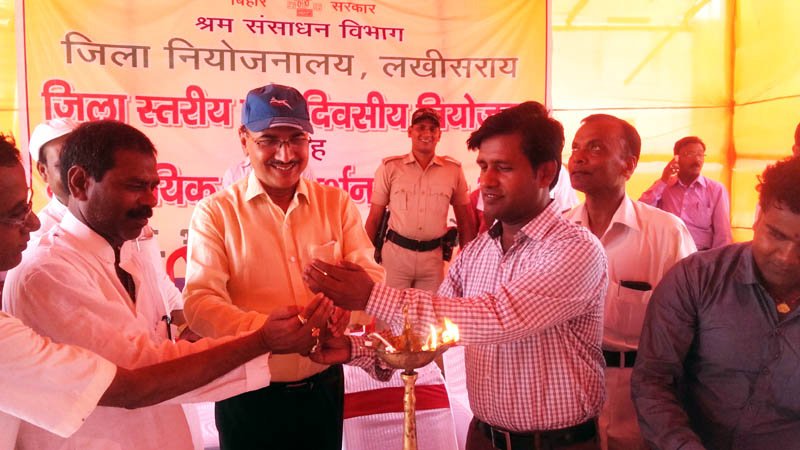 जिले के के.आर.के.मैदान में जिला नियोजन पदाधिकारी (श्रम संसाधन विभाग)लखीसराय के द्धारा एक दिवसीय नियोजन सह मार्गदर्शन बेरोजगार मेला का आयोजन किया गया है जिसकी अध्यक्षता श्रम विभाग के पदाधिकारी श्री अजय कुमार के देख-रेख में किया गया है वही इस मेले के आयोजन पर तथा शहर के बेरोजगारों को रोजगार मुहैया कराने को लेकर लखीसराय जिला अधिकारी सुनील कुमार, कल्याण पदाधिकारी इकवालराम, नियोजन पदाधिकारी अजय कुमार, नगर अध्यक्ष अरविंद