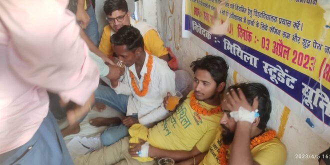 मिथिला स्टूडेंट यूनियन के द्वारा सोमवार से छात्र हित सम्बंधित विभिन्न मांगो को लेकर शुरू हुआ अनिश्चितकालीन भूख हड़ताल तीसरे दिन सफल वार्ता के बाद समाप्त किया गया एमएसयू के विश्वविद्यालय प्रवक्ता नीरज भारद्वाज कोषाध्यक्ष नारायण मिश्रा एमएलएसएम कॉलेज अध्यक्ष अमन पाण्डेय डीएनवाई कॉलेज अध्यक्ष आर्यन कुमार भूख हड़ताल पर 3 दिन तक बैठे रहे इस बिच विश्वविद्यालय प्रशासन से कई दौर का वार्ता हुआ लेकिन सफल नहीं हो पाया अनसन में शामिल अमन पाण्डेय नारायण मिश्रा आर्यन कुमार का हालत गंभीर बना हुआ हैं आज अनशन का तीसरा दिन हैं , रात में अनसन कारियों का स्थिति नाजुक हुई थी ! आनन-फानन में मेडिकल ट्रीटमेंट के बाद हालात सुधार है ! इस तपस भरी गर्मी और धूप में अन्न – जल त्याग करना एक बहुत बड़ी बात है। ससमय शैक्षणिक सत्र , समय पर रिजल्ट , रिजल्ट की समस्याओं से निदान , समय से नामांकन , छात्र संघ चुनाव एवं विभिन्न मांगों को लेकर आमरण अनशन आयोजित है जिसपर कई मुद्दों पर सहमति भी बनी लेकिन मामला 2 मुद्दों पर आकर फंसा हुआ हैं जिसमे पार्ट 2 रिजल्ट में 12 नंबर ग्रेस देकर पास करने की हमलोग मांग कर रहे हैं औऱ विश्वविद्यालय 5 नंबर ग्रेस देने की बात केह रहे हैं दूसरा मामला डाटा सेंटर के अनुबंध रद्द करने की हैं जिसपर कुलपति से वार्ता के बाद ही इस विषय पर विश्वविद्यालय प्रशासन कुछ केहने को तैयार होंगे जिस कारण यह आंदोलन तीसरे दिन भी जारी हैं तीसरे दिन शाम 3.30 बजे अनसनकारी अमन पाण्डेय का बीपी 60/90 होने पऱ डीएमसीएच भर्ती किया गया जबकि 3 औऱ अनसनकारी का स्वास्थ लगातार गिरता जा रहा हैं अनसनकारियों के समर्थन में पूर्व राष्ट्रीय अध्यक्ष अविनाश भारद्वाज राष्ट्रीय प्रवक्ता अमन सक्सेना बिहार प्रभारी अमित कुमार ठाकुर पूर्व प्रवक्ता विद्याभूषण राय विश्वविद्यालय संरक्षक सागर सिंह विश्वविद्यालय अध्यक्ष आदित्य मिश्रा दरभंगा उपाध्यक्ष अमित मिश्रा विश्वविद्यालय जिला कॉलेज प्रभारी अनीश चौधरी आशीष कुमार आदित्य मंडल ने धरना को सम्बोधित किया शाम 4 बजे के करीब संगठन के अमन सक्सेना सागर सिंह आदित्य मिश्रा आशिश कुमार औऱ अविनाश सहनी को वार्ता के लिए कुलपति के पास ले जाया गया बारी बारी से सभी मुद्दों पर कुलपति औऱ कुलसचिव से वार्ता किया गया जिसमे प्रॉक्टर डॉक्टर अजय नाथ झा डीआर 1 डॉक्टर कामेस्वर पासवान भी मौजूद रहे सभी मांगो पर सकारात्मक पहल करने के लिए विश्वविद्यालय द्वारा लिखित दिया गया जिसके बाद आंदोलनकारियों को प्रॉक्टर औऱ डीआर 1 के द्वारा जूस पिलाकार आंदोलन को समाप्त किया गया संगठन के सदस्यो ने कहा अभी आंदोलन को समाप्त किया गया हैं लेकिन अभी आंदोलन समाप्त नही हुआ हैं अगर मांग पूरा नहीं किया जाता हैं तो जून के बाद हमलोग विश्