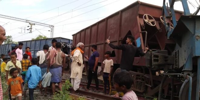 दरभंगा सीतामढ़ी रेलखंड पर बड़ा हादसा मालगाड़ी की तीन बोगी पलटी