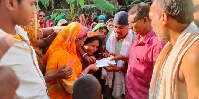 दरभंगा आपदा पीड़ितों का राज्य के खजाने पर पहला अधिकार तथा 24 घण्टे के अंदर आपदा पीड़ितों को अनुग्रह अनुदान राशि का भुगतान करने के मुख्यमंत्री नीतीश कुमार के निर्देश के आलोक में 23 मई को दरभंगा जिला के बिरौल अंचल व जाले अंचल में हुए बज्रपात में तीन मृतक यथा – जाले प्रखण्ड के अहियारी निवासी जगदीश राय, बिरौल प्रखण्ड के जगदीशपुर निवासी आनन्द सहनी एवं नीतीश कुमार के आश्रितों को जिला प्रशासन द्वारा 04-04 लाख रुपये के अनुग्रह अनुदान राशि का चेक प्रदान किया गया।
