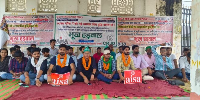 ललित नारायण मिथिला विवि सहित अन्य विवि में राजभवन के द्वारा नई शिक्षा नीति के तहत FYUP को लागू किया गया है। तथा नामांकन की प्रक्रिया भी शुरू कर दी गई है। जिस पर राज्य सरकार की भी असहमति है। लेकिन फिर भी बिहार के राज्यपाल हठधर्मिता से FYUP को लागू करने का पत्र निकाल देते है। कुछ दिन पहले CBCS को लागू किया गया उसके अनुरूप फीस भी लिया जा रहा है लेकिन कोई सुविधा छात्र-छात्राओं को नही मिल रहा है। विवि के अंदर शैक्षणिक व प्रशाशनिक अराजकता चरम पर है। सीएम लॉ कॉलेज में अधिकारी की गलत कार्य के चलते नामांकन पर रोक लगा हुआ है। दूरस्थ शिक्षा निदेशालय में नामांकन बन्द है। ऐसी स्थिति में आइसा और छात्र राजद में 4-5 जुलाई को भुख हड़ताल के माध्यम से निम्नलिखित मांगो पर ध्यान आकृष्ट कराते हुए हल करने की दिशा में पहल करने की मांग करते है :-