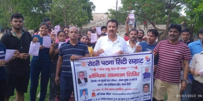 रक्तदान के लिए रोटरी सम्राट ने निकाली प्रभात फेरी