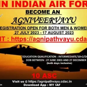 अग्निवीरवायु भर्ती के लिए ऑनलाइन रजिस्ट्रेशन 27 जुलाई 2023 से शुरू होगी