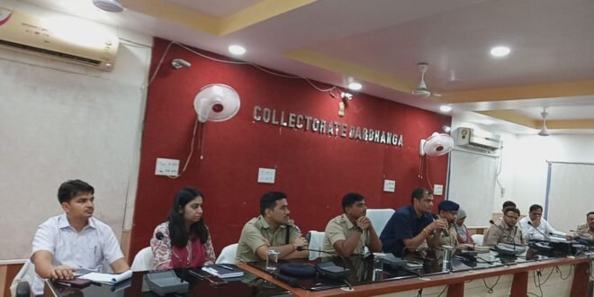 दरभंगा, समाहरणालय अवस्थित बाबा साहेब डॉ. भीमराव अम्बेडकर सभागार में जिलाधिकारी राजीव रौशन एवं वरीय पुलिस अधीक्षक श्री अवकाश कुमार की संयुक्त अध्यक्षता में मुहर्रम पर्व को लेकर शांति समिति की बैठक आयोजित की गयी।