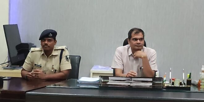 दरभंगा जिलाधिकारी दरभंगा के कार्यालय कक्ष में जिलाधिकारी दरभंगा राजीव रौशन एवं वरीय पुलिस अधीक्षक श्री अवकाश कुमार द्वारा संयुक्त रुप से प्रेस ब्रीफ़िंग करते हुए दरभंगा में