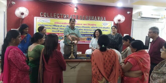दरभंगा, समाहरणालय अवस्थित बाबा साहेब डॉ.भीमराव अंबेडकर सभागार में महिला एवं बाल विकास निगम बिहार द्वारा महिलाओं का यौन उत्पीड़न निवारण, प्रतिषेध एवं प्रतितोष अधिनियम 2013 के प्रभावी कार्यान्वयन हेतु प्रमंडल स्तरीय एक दिवसीय प्रशिक्षण-सह-कार्यशाला का शुभारंभ जिलाधिकारी दरभंगा राजीव रौशन के कर कमलों से दीप प्रज्वलित कर किया गया।