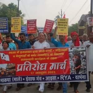 गाजा में इजरायल द्वारा बच्चों-महिलाओं और बेगुनाहों के बर्बर जनसंहार और भारत में मीडिया/पत्रकारों पर मोदी सरकार द्वारा किए जा रहे हमले के खिलाफ आज दरभंगा में भाकपा(माले), इंसाफ मंच, आइसा, RYA के संयुक्त बैनर से नागरिक प्रतिरोध मार्च का आयोजन हुआ।