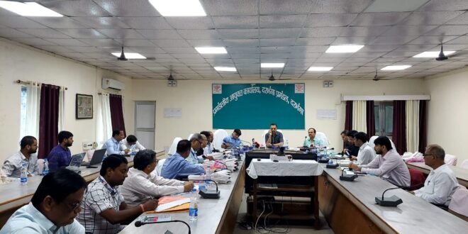 बैठक में ऑनलाईन दाखिल-खारिज के आवेदन के निष्पादन की समीक्षा में पाया गया कि तीनों जिला के निष्पादन की स्थिति औसतन 75 प्रतिशत है, जिन अंचलों के निष्पादन की स्थिति कम पायी गई।