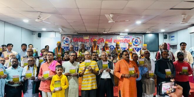 इससे पहले अतिथियों का स्वागत करते हुए विद्यापति सेवा संस्थान के महासचिव डॉ बैद्यनाथ चौधरी बैजू ने कहा कि मिथिला के विभिन्न गांवों के सामाजिक, आर्थिक, सांस्कृतिक, राजनैतिक, शैक्षणिक, साहित्यिक और भाषा के क्षेत्र में समग्र विकास के लिए पृथक मिथिला राज्य का गठन निहायत जरूरी है। क्योंकि सांस्कृतिक संपन्नता के लिए दुनिया भर में विख्यात मिथिला आज सरकारी अपेक्षाओं के कारण लगातार आर्थिक पिछड़ेपन का शिकार होने को मजबूर हो रहा है। उन्होंने कहा कि सरकारी उदासीनता का नतीजा है कि जिस मिथिला क्षेत्र के गांव-गांव में कभी शिक्षा का केंद्र हुआ करता था, आज वहां के छात्र पलायन को मजबूर हो रहे हैं।