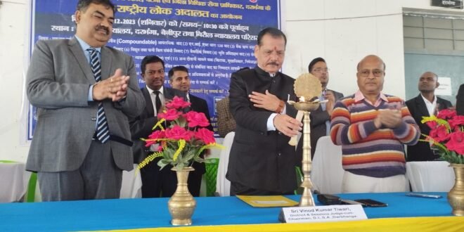 दरभंगा, राष्ट्रीय विधिक सेवा प्राधिकार के निर्देशानुसार बिहार राज्य विधिक सेवा प्राधिकार पटना एवं जिला विधिक सेवा प्राधिकार दरभंगा के तत्वाधान में राष्ट्रीय लोक अदालत का आयोजन जिला एवं सत्र न्यायाधीश-सह-अध्यक्ष, जिला विधिक सेवा प्राधिकार, दरभंगा श्री विनोद कुमार तिवारी एवं अपर समाहर्ता-सह-अपर जिला दंडाधिकारी राजेश झा “राजा” के द्वारा दीप प्रज्वलित कर व्यवहार न्यायालय दरभंगा में किया गया।