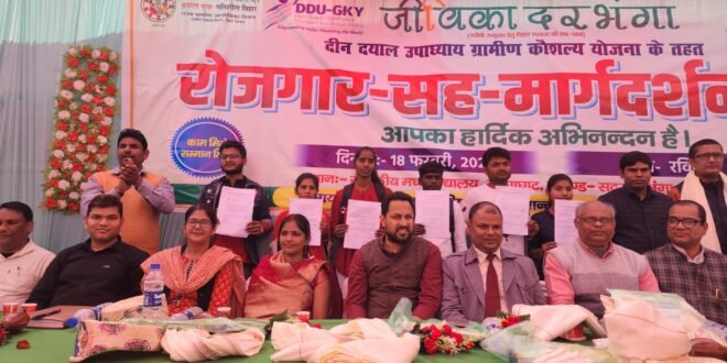 दरभंगा दीन दयाल उपाध्याय ग्रामीण कौशल योजना के तहत जीविका द्वारा रोजगार-सह-मार्गदर्शन मेला का आयोजन रविवार को दरभंगा जिला के सदर प्रखंड गौसाघाट स्थित राजकीय मध्य विद्यालय परिसर में किया गया*।