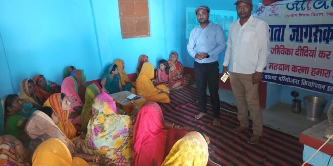जीविका दीदियों ने पिको प्रोजेक्टर से वीडियो दिखा, किया मतदातों को जागरूक।