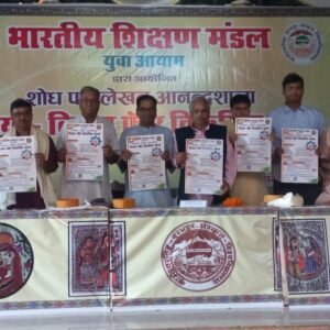 वही इस कार्यक्रम का उद्देश्य आज के युवा वर्ग में विजन फाॅर विकसित भारत को लेकर क्या संकल्पना है ? तथा शिक्षा का उद्देश्य भारत केंद्रित बनाना था । वैदिक मंगलाचरण डॉ. ध्रुव मिश्र ने किया। एवं मंचस्थ विद्वज्जनों के द्वारा दीप प्रज्वलन के साथ कार्यक्रम प्रारंभ हुआ । भारतीय शिक्षण मंडल उत्तर बिहार प्रांत संपर्क प्रमुख राजदेव ने ध्येय मंत्र , ध्यान श्लोक एवं संगठन गीत का पाठ करवाया । कुल गीत व्याकरण विभाग की सहायक प्राचार्य डॉक्टर साधना शर्मा जी द्वारा गाया गया । मंचस्थ विद्वज्जनों का स्वागत स्नातकोत्तर प्रभारी प्रो. सुरेश्वर झा ने किया । तदुपरांत अतिथियों के द्वारा शोध लेखन से संबंधित पोस्टर का विमोचन किया गया । अजीत कुमार अध्यक्ष भारतीय शिक्षण मंडल, उत्तर बिहार ने विजन फाॅर विकसित भारत को केंद्रित करते हुए विषय प्रवर्तन किया । प्रो. ओम प्रकाश सिंह राष्ट्रीय उपाध्यक्ष ने भारतीय शिक्षण मंडल का परिचय करवाया तथा मंडल के सात मुख्य बिंदुओं से सभी को अवगत करवाया। उन्होंने नव शिक्षा निर्माण तथा भारतीय ज्ञान परंपरा को पुष्ट करने का आह्वान किया । क्षेत्र संयोजिका सुश्री अंबिका आर्यन ने अपने व्याख्यान में वामपंथी बुद्धिजीवियों द्वारा भारत विरोधी नॉरेटिव का भारतीय शिक्षा में समाहित होने का विरोध किया । विश्वविद्यालय विभाग प्रमुख डॉ0 अनिल कुमार जी ने शोध लेखन प्रतियोगिता प्रक्रिया के नियम तथा शोध बिंदुओं पर प्रकाश डाला । प्रांत उपाध्यक्ष डॉ0 साकेत रमन जी ने शोध पत्र लेखन विधि पर प्रकाश डाला उन्होंने बताया कि भारतीय शिक्षण मंडल “वयम् राष्ट्रे जागृयाम ” अर्थात् हम राष्ट्र को जीवंत एवं जाग्रत बनायें पर कार्य कर रहा है । शोध पत्र लेखन विधि के विविध पक्षों पर चर्चा करते हुए उन्होंने बताया कि विषय से संबंधित अनुत्तरित प्रश्नों का उत्तर सहसंबंध तथा तादात्म्य संबंध के द्वारा सैद्धांतिक लेखन ही शोध पत्र लेखन कहलाता है । गोष्टी की अध्यक्षता विश्वविद्यालय के माननीय कुलपति प्रो . लक्ष्मी निवास पांडेय जी ने की तथा उन्होंने बताया कि भारतीय ज्ञान परंपरा को भारत केंद्रित कर भारत को विकसित किया जा सकता है तथा जिस दिन भारतीय संस्कृत को देव भाषा न कह कर जन भाषा कहना शुरू कर देगा उस दिन शिक्षा का पूर्ण भारतीय करण हो जाएगा ।