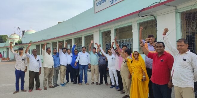11 सूत्री मांगों के समर्थन में काला बिल्ला लगा काम पर रहे सीएम साइंस कॉलेज के कर्मचारी