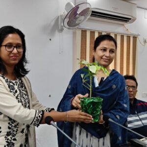 सहायक निदेशक सुश्री नेहा कुमारी जिला बाल संरक्षण पदाधिकारी ने जल जीवन हरियाली की प्रतीक सभी आगत अतिथियों को पौधा देकर सम्मानित की।