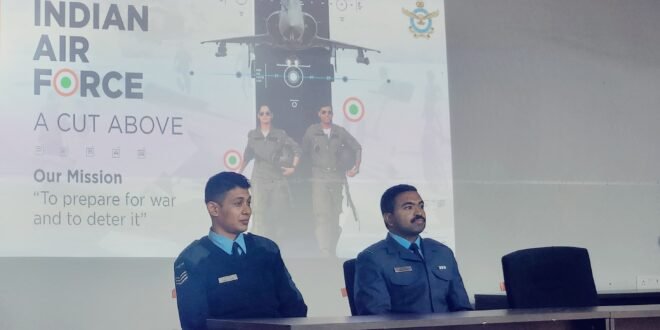फ्लाइंग ऑफिसर गुप्ता ने भारतीय वायु सेना में अधिकारी के जीवन की गरिमा और जिम्मेदारियों पर प्रकाश डाला। उन्होंने अपने व्यक्तिगत अनुभव साझा करते हुए छात्रों को राष्ट्र सेवा के गौरव और व्यक्तिगत एवं पेशेवर विकास की संभावनाओं के बारे में प्रेरित किया।