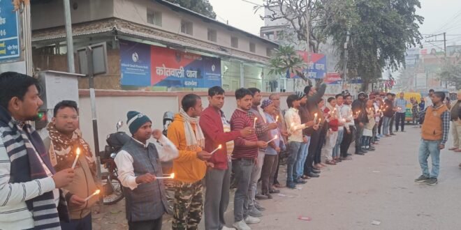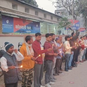 बिहार का चक्का जाम के पूर्व आह्वान पर BPSC छात्र सोनू कुमार को मोमबत्ती जलाकर दिया गया श्रद्धांजलि।