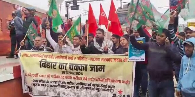 *नेताओं ने कहा सरकार BPSC की 70वीं पीटी परीक्षा पटना समेत बिहार के अनेक केंद्रों पर पेपर लीक व घोर आपत्तिजनक अनियमितताओं के साथ सम्पन्न हुई. परीक्षा रद्द करने की लोकप्रिय मांग उठी अभ्यर्थी ठंड में कई दिनों से धरने पर बैठे है लेकिन नीतीश–भाजपा सरकार न सिर्फ जिद्द में बहरी बनी हुई है बल्कि उल्टे न्याय की मांग कर रहे नौजवानों पर अंग्रेजी शासन की याद दिलाने वाला बर्बर लाठीचार्ज और वाटरकॉनेन से पानी का बौछार किया जा रहा है।*