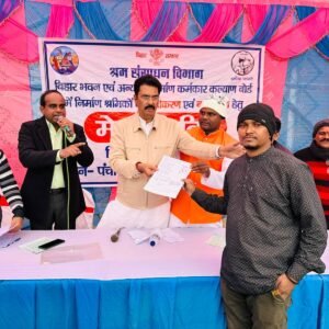 राकेश रंजन उप श्रमायुक्त, दरभंगा प्रमण्डल, दरभंगा द्वारा श्रम विभाग की ओर से संचालित विभिन्न योजनाओं की विस्तृत जानकारी देने के क्रम में पात्र निर्माण श्रमिकों का निबंधन एवं नवीकरण कराया गया। साथ ही उनके द्वारा बताया गया कि निर्माण श्रमिकों की सुविधा के लिये प्रत्येक प्रखंड के पंचायतों में विभागीय निदेश के आलोक में कैम्पों का आयोजन किया जा रहा है, ताकि जन-जन तक श्रम विभागों द्वारा संचालित योजनाओ की जानकारी एवं सारी सुविधायें उन तक पहुंच सकें।