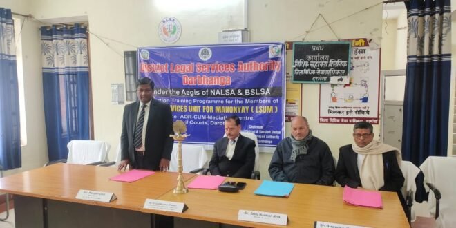 दरभंगा मानसिक रुप से बीमार व्यक्तियों के लिए गठित विधिक सेवा इकाई के सदस्यों हेतु दो दिवसीय ओरिएंटेशन कार्यक्रम का उद्घाटन प्रधान जिला एवं सत्र न्यायाधीश सह अध्यक्ष जिला विधिक सेवा प्राधिकार श्री विनोद कुमार तिवारी ने किया।