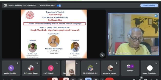 मारवाड़ी महाविद्यालय, दरभंगा के संस्कृत विभाग द्वारा एक विशेष व्याख्यान आयोजित किया गया, जिसमें राष्ट्रपति पुरस्कार से सम्मानित प्रो. उमा शंकर व्यास ने पालि और संस्कृत के गहरे संबंधों पर प्रकाश डाला। नव नालंदा महाविहार के पूर्व निदेशक और पालि-हिन्दी शब्दकोश के संपादक प्रो. व्यास ने बताया कि संस्कृत और पालि भारतीय भाषाई परंपरा की दो महत्वपूर्ण कड़ियाँ हैं। संस्कृत वेदों, उपनिषदों और महाकाव्यों की भाषा रही है, जबकि पालि मुख्य रूप से बौद्ध ग्रंथों की भाषा है। पालि, संस्कृत से विकसित एक प्राकृत भाषा मानी जाती है, जिस पर संस्कृत का व्यापक प्रभाव देखा जाता है।