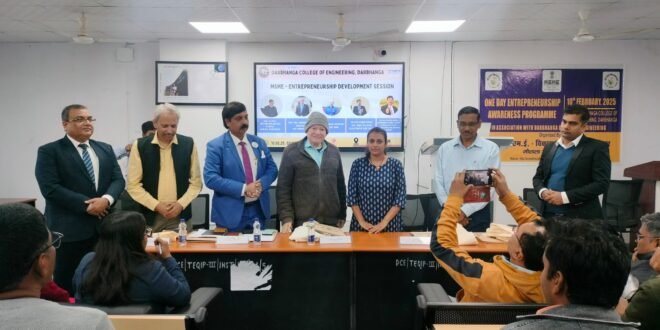 दरभंगा कॉलेज ऑफ इंजीनियरिंग (डीसीई) में सूक्ष्म, लघु और मध्यम उद्यम (एमएसएमई) के सहयोग से एक विशेष उद्यमिता विकास सत्र का आयोजन किया गया। इस सत्र का मुख्य उद्देश्य छात्रों को उद्यमिता के महत्व को समझाना, उन्हें व्यवसाय आरंभ करने के लिए प्रेरित करना और एमएसएमई द्वारा उपलब्ध योजनाओं और संसाधनों के बारे में जानकारी प्रदान करना था।