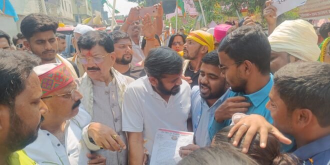 छात्रों ने लाइब्रेरियन बहाली संबंधित मांग पत्र पलायन रोको नौकरी दो यात्रा के दौरान कन्हैया कुमार को सौपा