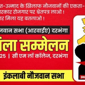 इंकलाबी नौजवान सभा (आरवाईए) का 7वा जिला सम्मेलन कल दिनांक 27 मई 2025 को 12 बजे से सी एम लॉ कॉलेज,दरभंगा में आयोजित होगी।
