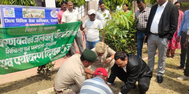 दरभंगा जिला विधिक सेवा प्राधिकार की ओर से विश्व पर्यावरण दिवस के अवसर पर वृक्षारोपण कार्यक्रम का आयोजन प्रभारी प्रधान जिला एवं सत्र न्यायाधीश सह प्रभारी अध्यक्ष जिला विधिक सेवा प्राधिकार संतोष कुमार पाण्डेय की उपस्थित में किया गया।