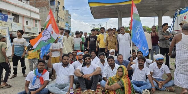 बिहार बंद के दौरान दरभंगा में कांग्रेस नेता डॉ. जमाल हसन के नेतृत्व में बड़ा विरोध प्रदर्शन