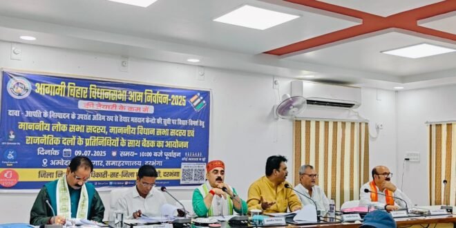 दरभंगा जिला निर्वाचन पदाधिकारी-सह-जिला पदाधिकारी दरभंगा कौशल कुमार की अध्यक्षता में आगामी बिहार विधानसभा आम निर्वाचन 2025 की तैयारी के क्रम में दावा आपत्ति के निष्पादन के उपरांत अंतिम रूप से तैयार मतदान केंद्रों की सूची पर विचार विमर्श के लिए माननीय लोकसभा सदस्य, विधानसभा सदस्य एवं राजनीतिक दलों के प्रतिनिधियों के साथ बैठक आयोजित की गई।