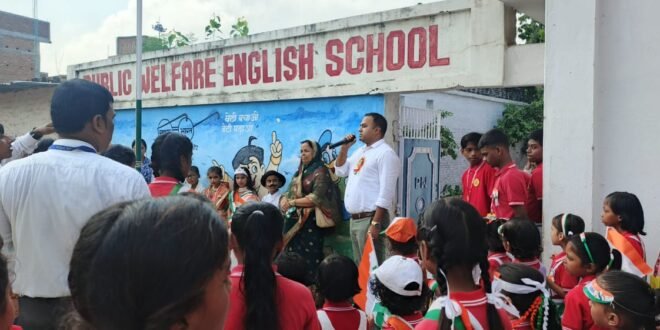 • पब्लिक वेलफेयर इंग्लिश स्कूल उर्दू बाजार दरभंगा प्रांगण में डीएमसीएच के वरिष्ठ रेजिडेंट डॉक्टर नीरज कुमार सिंह ने किया ध्वजारोहण।
