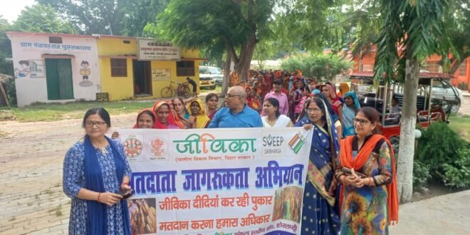 सभी 18 प्रखंडों में जीविका दीदियाँ घर-घर जाकर नागरिकों को मतदान के महत्व से अवगत करा रही हैं ताकि हर मतदाता, हर वोट” का लक्ष्य पूर्ण रूप से हासिल किया जा सके।