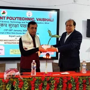 आपदा रोधी एवं पर्यावरण के अनुकूल समाज निर्माण को कृतसंकल्पित तथा विज्ञान एवं तकनीक के विभिन्न पहलुओं को समाज के अन्तिम पंक्ति के लोगों तक पहुंचाने को कटिबद्ध पथ निर्माण विभाग , बिहार के अधीक्षण अभियंता ,बिहार अभियन्त्रण सेवा संघ के पूर्व महासचिव एवं इण्डियन इन्जीनियर्स फेडरेशन (पूर्व) के पूर्व उपाध्यक्ष डा सुनील कुमार चौधरी ने गवर्नमेंट पॉलिटेक्निक, वैशाली के सभागार में भूकम्प सुरक्षा पखवाड़ा के तहत भूकम्प जागरूकता कार्यक्रम में मुख्य अतिथि एवं मुख्य वक्ता के रूप में स्वरचित कविता के उक्त पंक्तियों के माध्यम से भूकंप रोधी भवन निर्माण के तकनीक को बड़े ही सरल, रोचक एवं प्रभाव कारी तरीके से सभागार में उपस्थित छात्रों एवं शिक्षकों को समझाया । उन्होंने बताया कि भारवाहक दीवार वाले भवन के पिलर निर्माण में चार छड़ डालने की आवश्यकता नहीं है। अपितु पिलर में एक छड़ डालकर भूकंप रोधी मजबूत एवं सस्ता भवन का निर्माण किया जा सकता है। उन्होने कॉलम , बीम , सलैब मे छड़ की उचित मात्रा, भूकंपीय बैंड में झुमका एंव बीम में चुड़ी के बीच की दूरी डिजाइन के हिसाब से रखने पर बल दिया। बीम एवं कॉलम के जोड़ों के पास सघन चुड़ी के महत्व को विस्तार से समझाया गया। भूकंप आने के समय बीम एवं कॉलम के आचरण एवं भूकंप के विपरीत प्रभाव से बचाने के लिए छड़, झुमका ,चूड़ी एवं मकान के नीव की गहराई तथा उससे संबंधित तकनीकी बारीकियों का सैद्धांतिक एवं प्रायोगिक ज्ञान तथा सामग्री की गुणवत्ता के महत्व पर विस्तार से प्रकाश डाला।डा चौधरी ने भवन,सड़क एवं पुल के भूकंप रोधी छमता बढ़ाने, पर्यावरण के अनुकूल तकनीक को अपनाकर जलवायु परिवर्तन के प्रभाव को कम करने तथा आपदा प्रबंधन के क्षेत्र मे अनेको अभिनव कार्य किये है जो समाज,राज्य एवं देश के विकास मे महत्वपूर्ण योगदान अदा कर सकता है। अन्तरराष्ट्रीय एवं राष्ट्रीय स्तर के तकनीकी एवं सामाजिक संगठनों से जुड़कर भूकंप एवं उससे निपटने के लिए डा चौधरी डिजास्टर रिजिलिएन्ट एवं कौस्ट इफेक्टिव टेक्नोलॉजी को समाज के अन्तिम पंक्ति के लोगों तक पहुंचाने का काम करते रहे हैं ।डा चौधरी को 28 अन्तर्राष्ट्रीय एवं राष्ट्रीय पुरस्कार मिल चुका है एवं 235 शोध पत्र विभिन्न प्रतिष्ठित जर्नल एवं कान्फ्रेस में प्रकाशित हो चुका है ।इस अवसर पर निम्न पंक्तियों के माध्यम से डा चौधरी ने एक खूबसूरत पैगाम देने की कोशिश की-