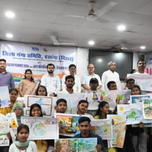 दरभंगा कौशल कुमार जिला पदाधिकारी-सह-अध्यक्ष, जिला गंगा समिति, दरभंगा के निर्देशनुसार गंगा स्वच्छता पखवाड़ा 2026 के अंतर्गत “नदियों एवं जल स्रोतों की स्वच्छता एवं संरक्षण की आवश्यकता” विषय पर एम.एल.एस.एम. कॉलेज, दरभंगा में ज्ञान प्रतियोगिता (चित्रकला, रंगोली एवं भाषण) का भव्य आयोजन किया गया।