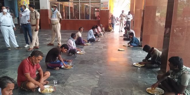 दरभंगा रेलवे जंक्शन पर लगातार जरूरतमंदों के बीच भोजन कराया जा रहा