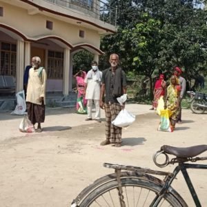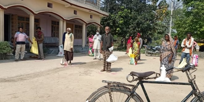 सोसल डिस्टनसिंग के साथ मुखिया द्वारा 400 मजदूरों के बीच साबुन और राशन का किया गया वितरण।