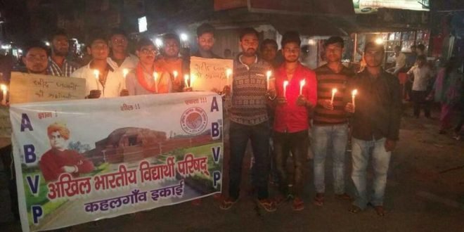 छतीसगढ़ के सुकमा जिले में नक्सली हमले में शहीद हुए 26 जवानों को अखिल भारतीय विद्यार्थी परिषद कहलगाँव नगर इकाई की ओर से भावभीणी श्रद्धांजलि प्रदान की गई। शाम के 6:30 बजे ABVP कार्यालय से नीकल कर पार्क चौक पर वीर शहीदों के नाम मोमबत्ती जलाकर श्रद्धांजलि अर्पित कि गई।