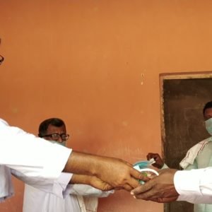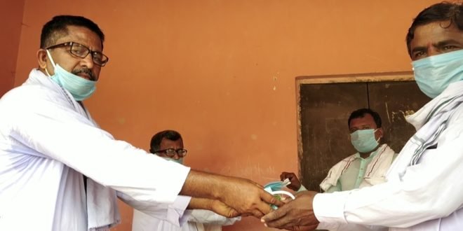 बसहा पंचायत में कोरोना महामारी के बीच मुखिया ने किया साबुन और मास्क का वितरण, सोशल डिस्टेंसिंग का हुआ पालन